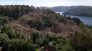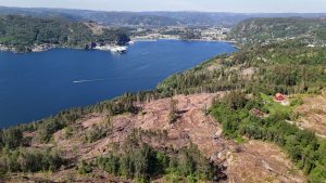 Skogen er hogd, og alt er klart for oppstart av tomtearbeid samt vei-/ og infrastruktur.